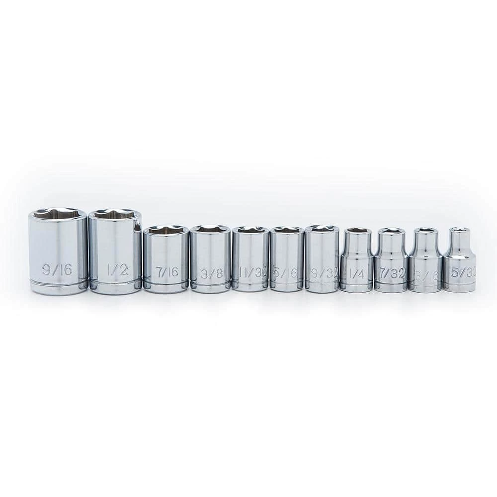 - Stubby Ratchet Set includes a 1/4 in. and 3/8 in. drive ratchet, (18) standard 1/4 in. drive 6-pt sockets, (4) standard 3/8 in. drive sockets, 6 in. adjustable wrench, (20) screwdriver bits (Phillips – 2 P1, 2 P2, 2 P3, square – 0, 1, 2, flat: 5/32, 3/16, 1/4 in., Hex SAE: 1/8, 1/4 in., TORX: T10, T15, T20, T25, T30 and 1/4 in. drive to 1/4 in. drive bit adapter), 1/4 in. drive to 1/4 in. socket adapter, and 4-1/2 in. ratcheting bit driver