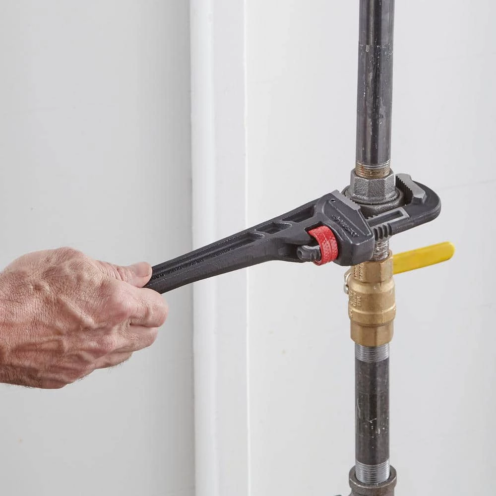 Husky’s 14 in. Heavy-Duty Straight Pipe Wrench is a must-have for your plumbing tool box. The high-quality, hot-forged steel jaws easily adjust and clamp to pipes up to 1 in. Dia. The Heavy-Duty Straight Wrench features adjustable jaws that perform great in a variety of plumbing repair jobs. It features a durable cast iron body and i-beam handle for superior durability. Working in tight spaces is easy with its trapezoid grip. Built to last and backed by the Husky lifetime warranty.