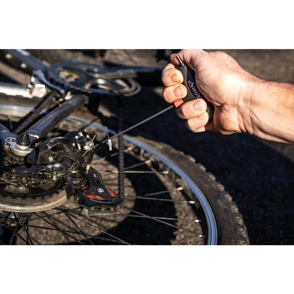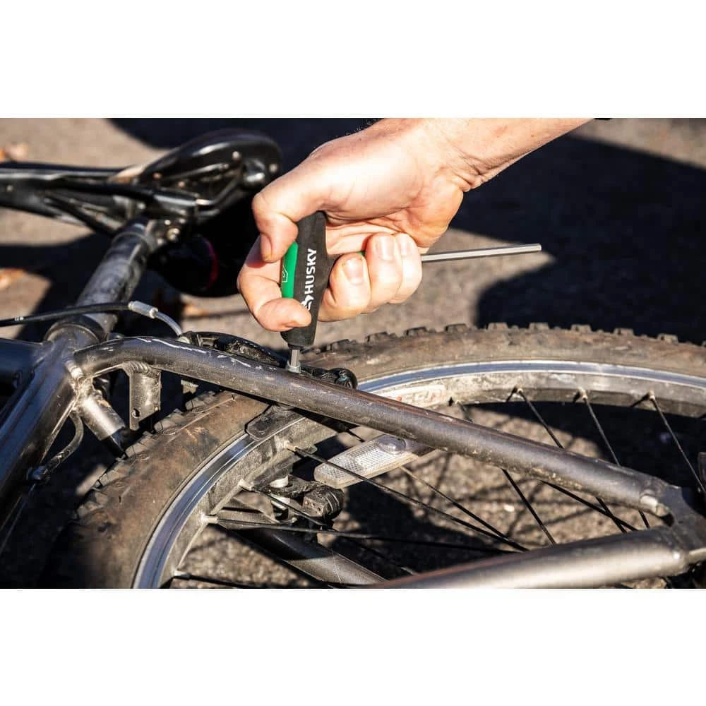 The Husky 14-Piece SAE and MM T-through Handle Hex Key Set is manufactured from allow steel for strength and durability. The comfortable ergonomic grip covers an L-shaped key giving you extra leverage on stubborn fasteners. The keys are designed to resist rotational distortion for years of service.