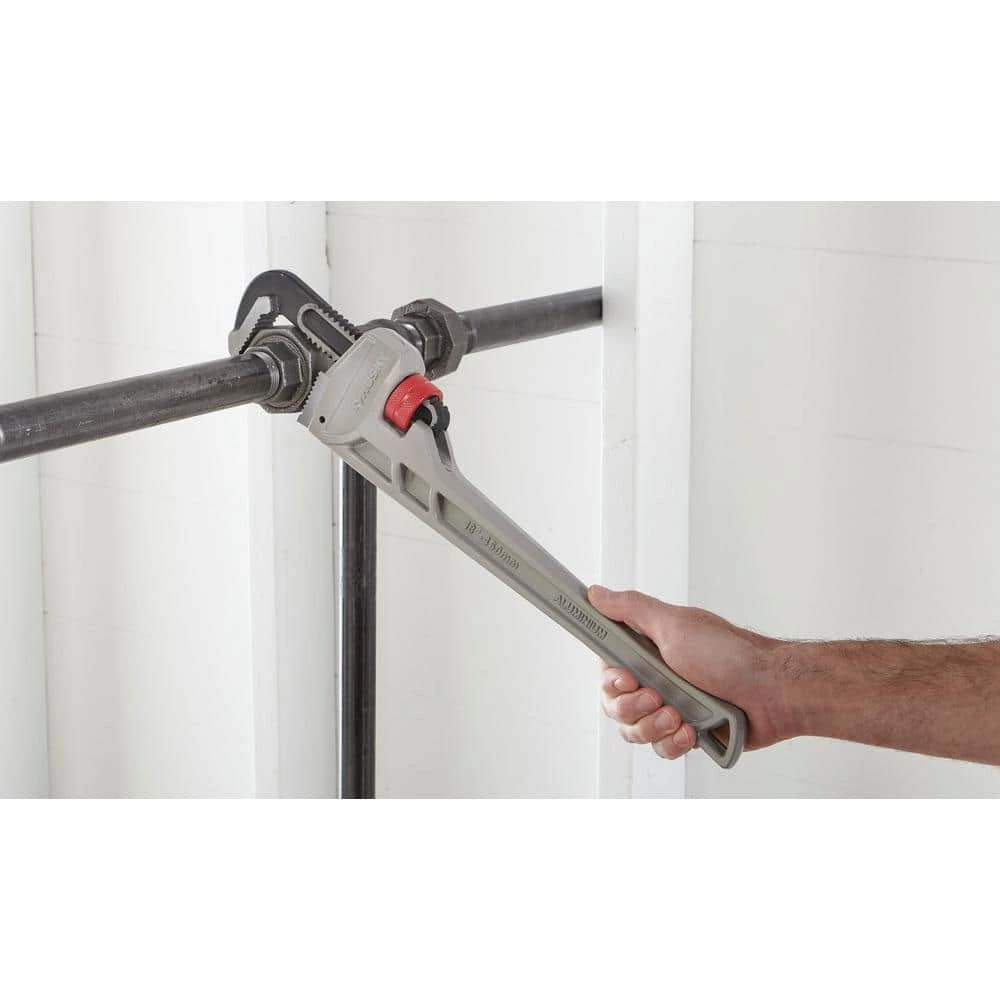 Trapezoid design easily turns or clamps pipes up to 2 in.
