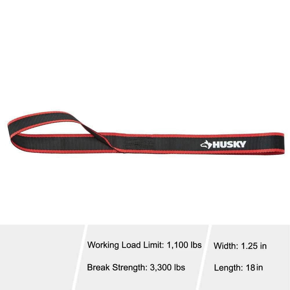 Secure your loads with the Husky 1-1/4 in. x 18 in. soft loop strap. The straps come with durable polyester webbing. The cushioned thumb releases each include an automatic lock. Polyester Webbing Resists Weather and is UV-protected.