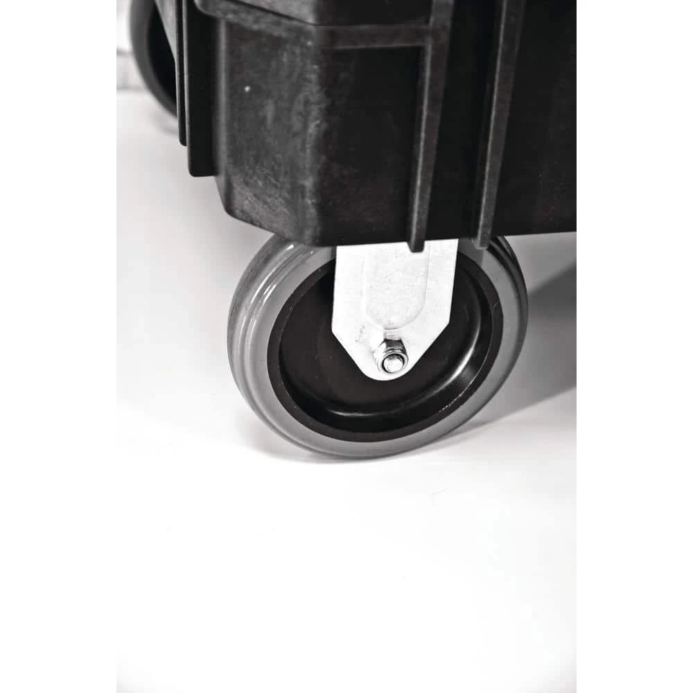 The Husky 2-Shelf Utility Cart has large 4 in. swivel casters for ease of mobility. The cart can hold up to 500 lbs., 250 lbs. on each shelf. Its structural foam construction means the cart won’t dent, chip or peel.