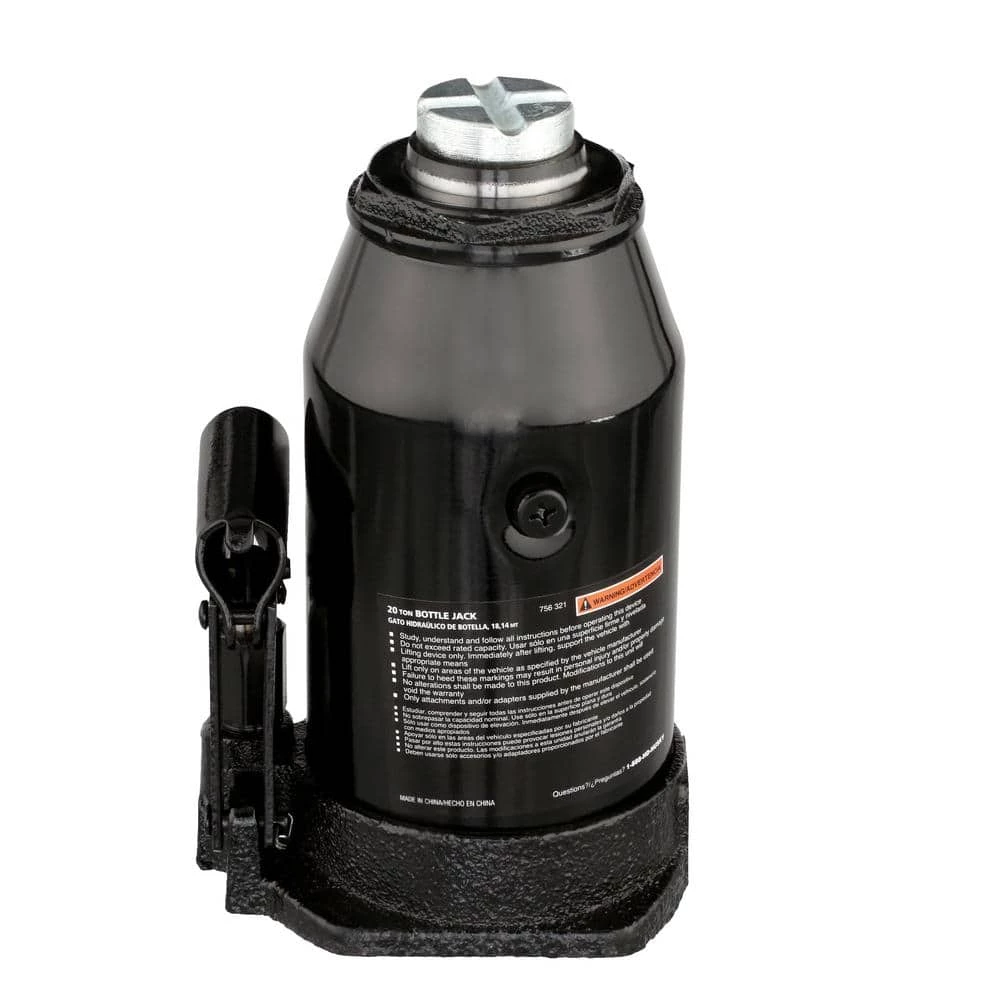This 20-Ton Bottle Jack from Husky is perfect for industrial, automotive and construction jobs. Each jack has a 40,000 lb. lifting capacity with a range of 9.5 in. to 17 in. Made from heavy duty iron, the base is designed to withstand even the toughest of jobs. Features an adjustable load saddle. This jack is the perfect addition to your Husky collection.