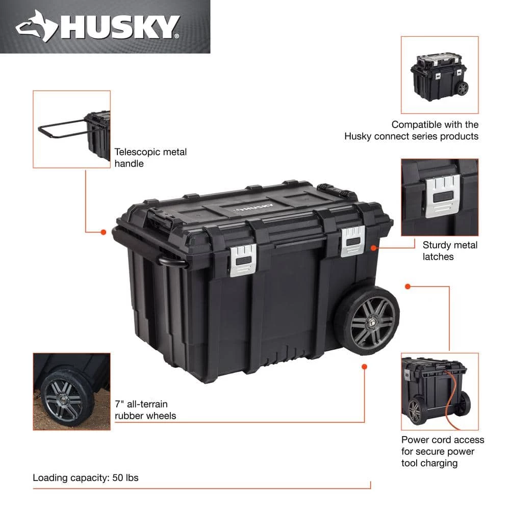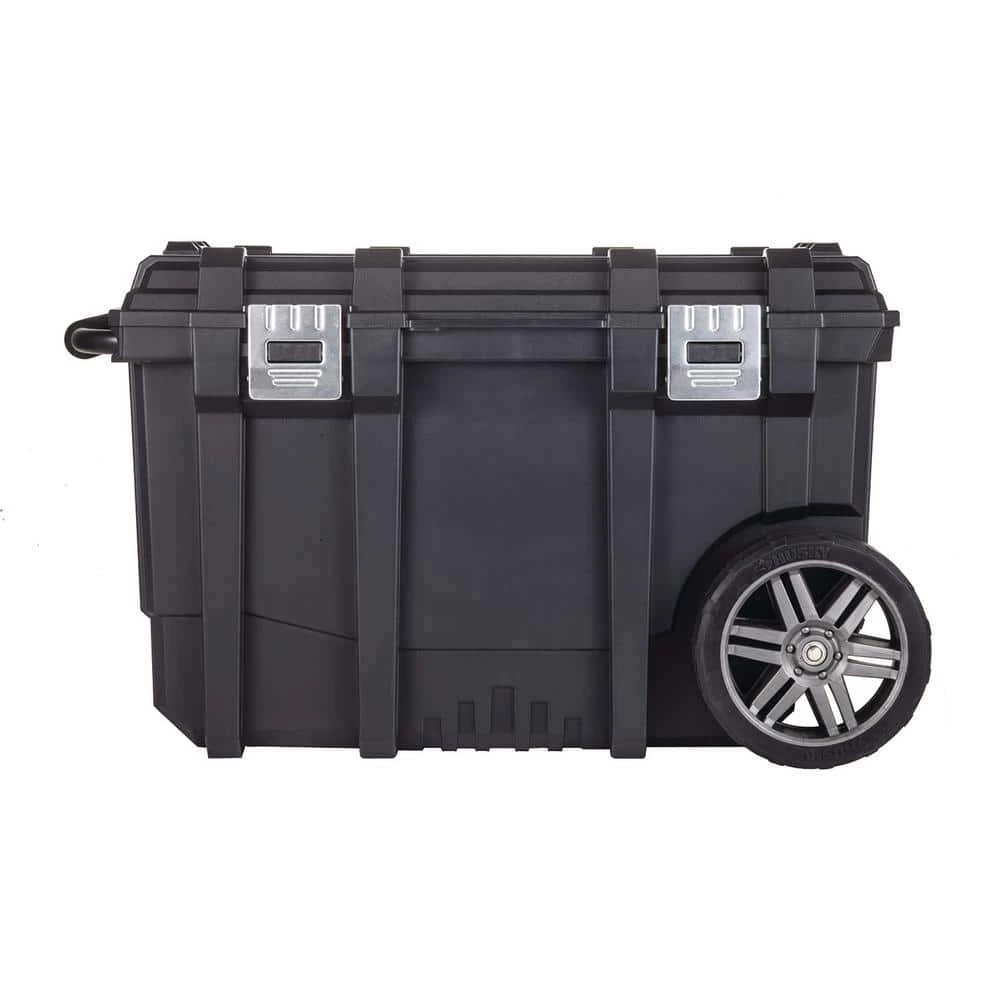 Heavy-duty metal latches and all-terrain wheels for durability