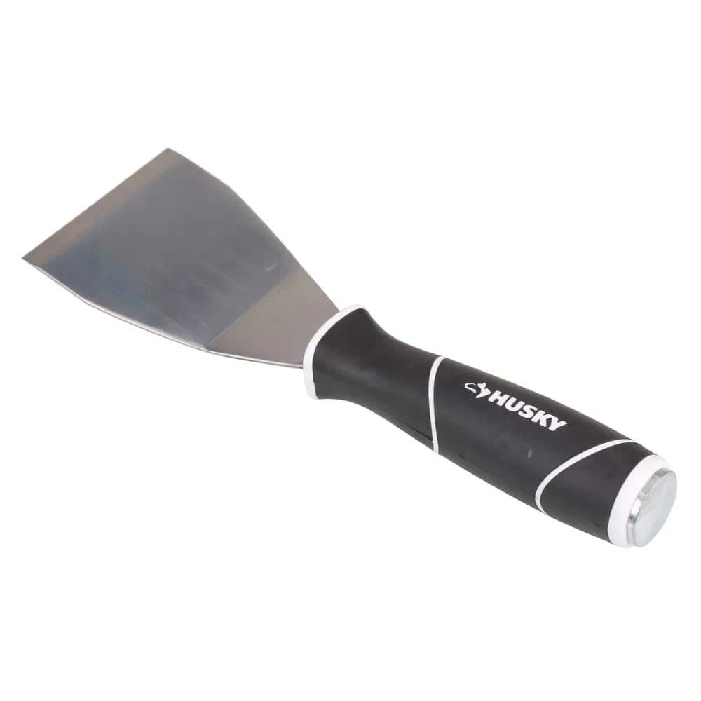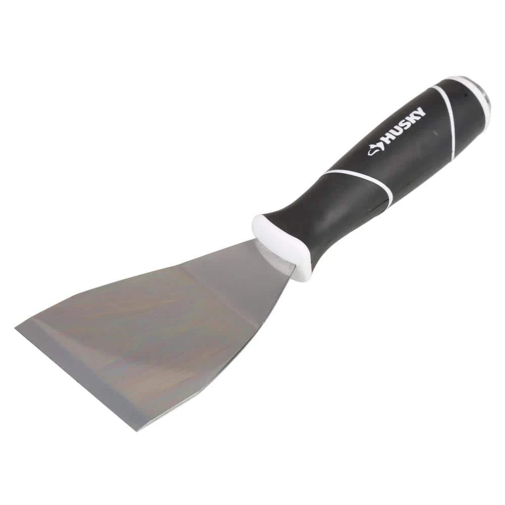The Husky 3 in. Bent Extendable Scraper features a heavy-duty straight blade made of high-quality carbon steel for durability. It is sturdy and thick enough to withstand DIY and pro jobs. This versatile scraper has a soft-grip handle that can be lengthened using an extension pole. Its screw-out hammer end ensures convenience while working on small hammering jobs.
