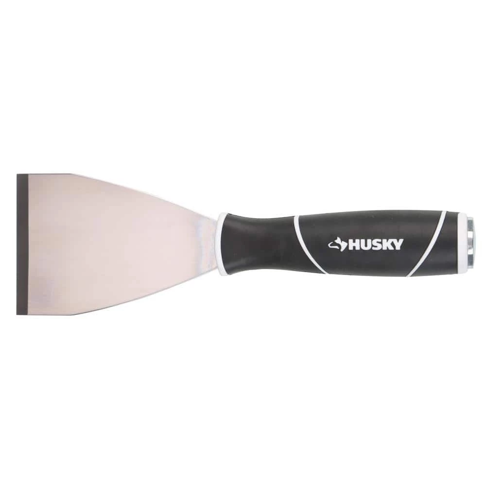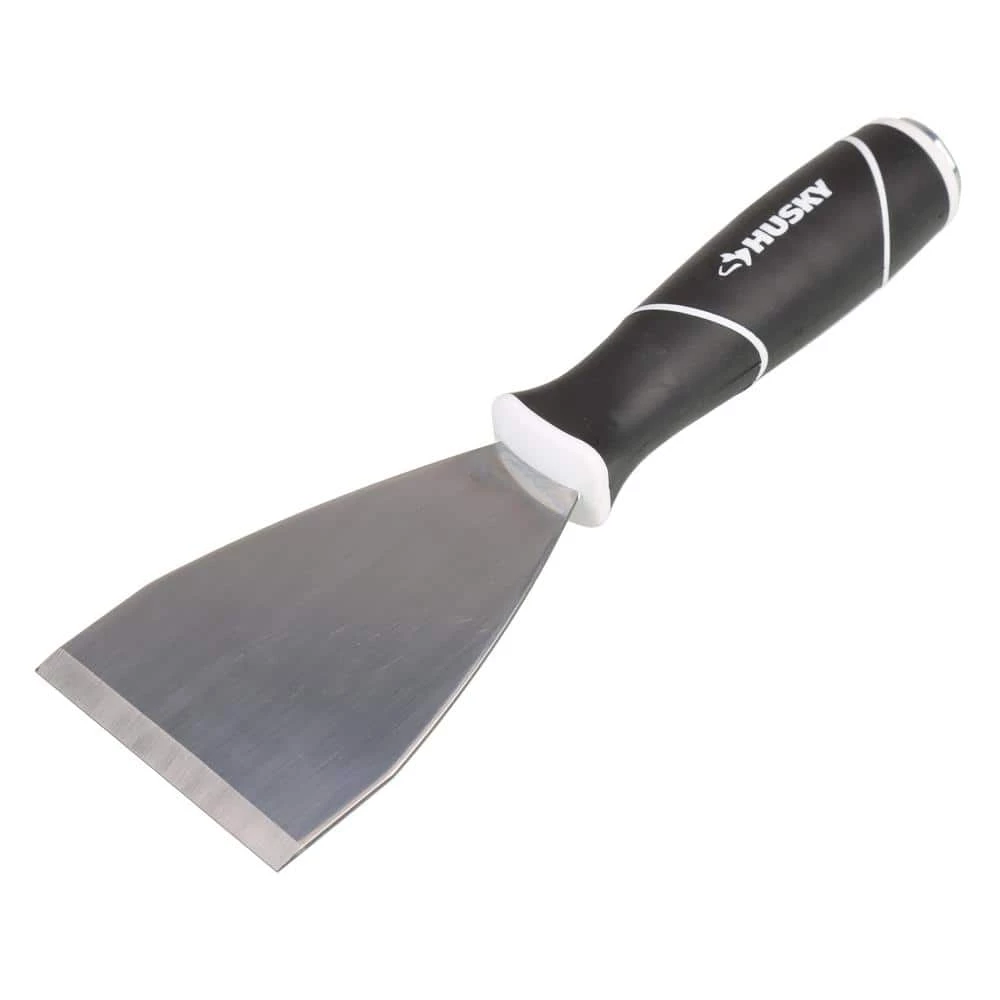 The Husky 3 in. Flat Extendable Scraper features a heavy-duty straight blade made of high-quality stainless steel that resists rust and corrosion. It is sturdy and thick enough to withstand extra-tough scraping jobs. This versatile scraper has a soft-grip handle that can be lengthened using an extension pole. Its screw-out hammer end ensures convenience while working on small hammering jobs.