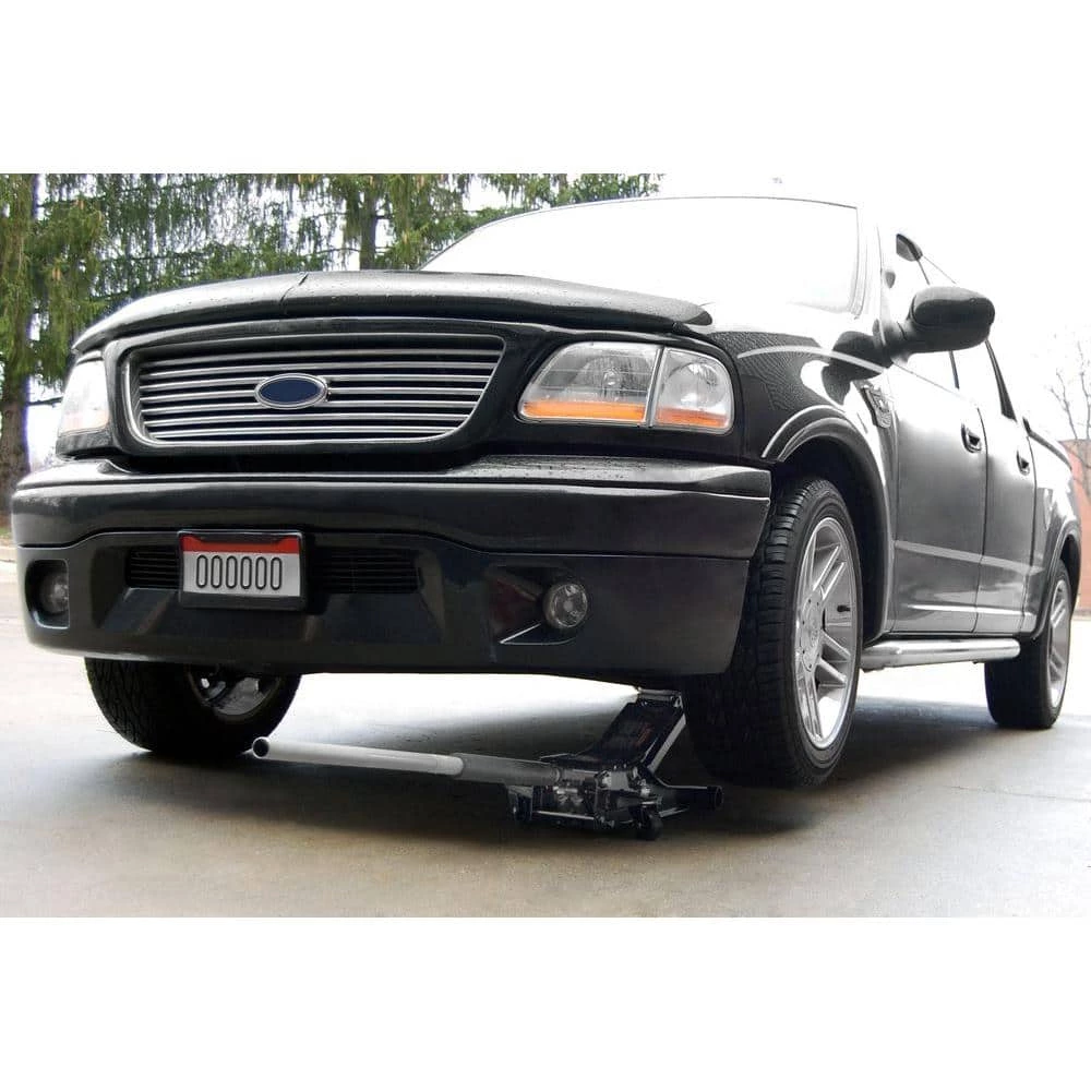 The Husky 3-Ton Low Profile Floor Jack with Quick Contact has a dual-pump design for a quick and hassle-free lift whenever you need it. This 3-Ton Low Profile Floor Jack can quickly lift up to 6,000 lbs. with a minimum height of 3-1/8 in. to a maximum height of 19-3/4 in. Rear swivel caster wheels on the Husky 3-Ton Low Profile Floor Jack offer easy positioning under cars, trucks and SUVs. The 3-Ton Low Profile Floor Jack with Speedy lift consists of a plunger, plunger cavity, hydraulic oil reservoir, cylinder and ram. An upward stoke of the jack handle draws oil from the reservoir into the plunger caity and a downward stroke forces oil into the cylinder, pushing out the ram and raising the saddle. This car jack is the perfect car accessory to add to your Husky automotive and tool collection.