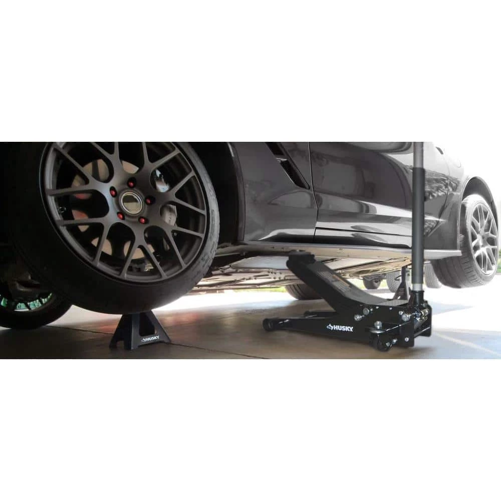 - Husky 3-ton low profile floor jack includes one 3-ton floor jack and 1 handle (oil not included)