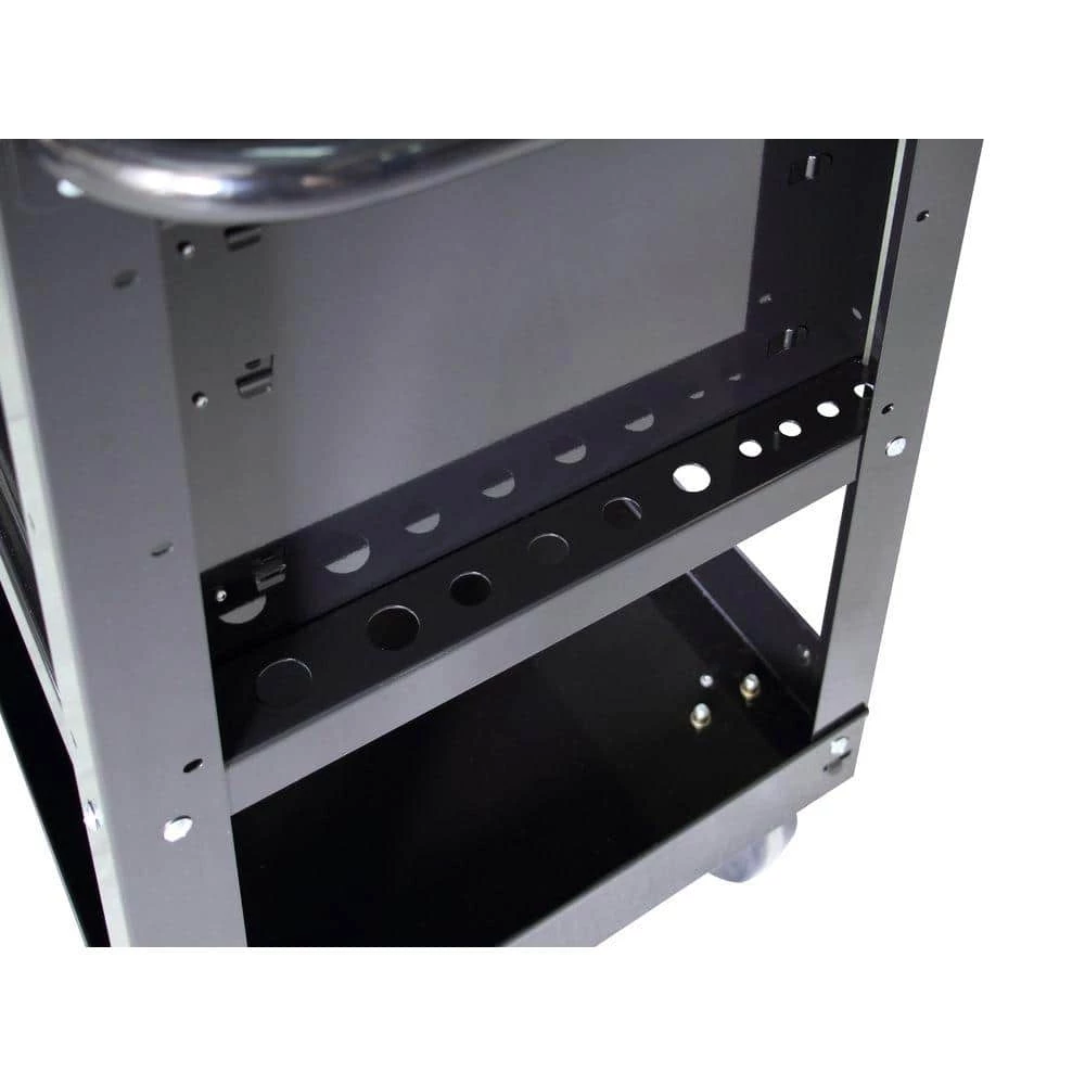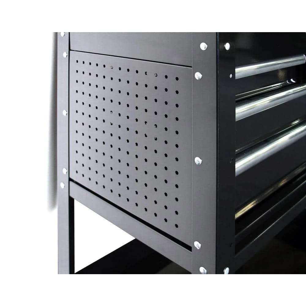 - Pegboard side wall for additional vertical storage options and pre-drilled holes for screwdrivers and tools