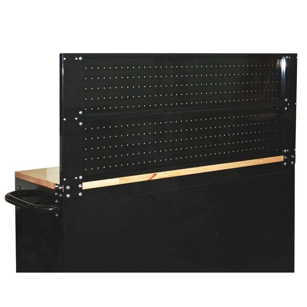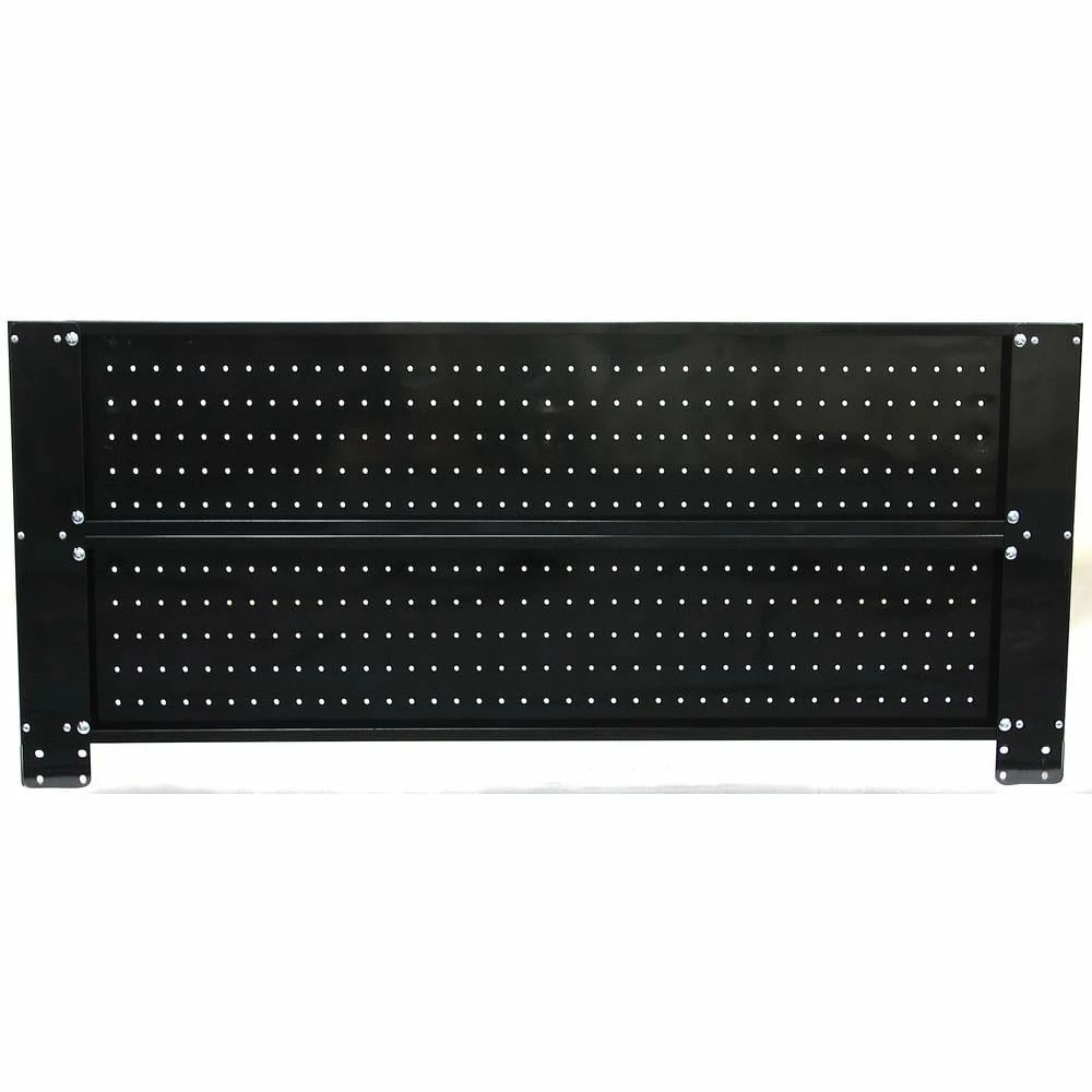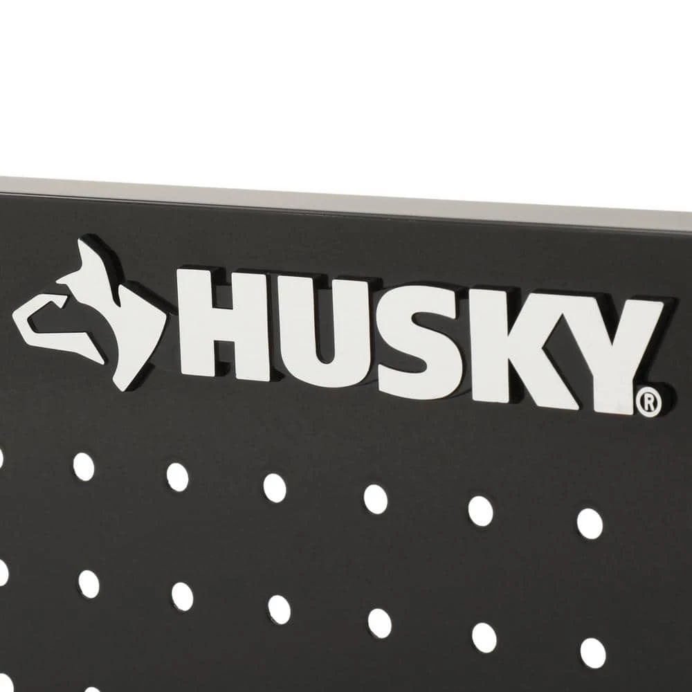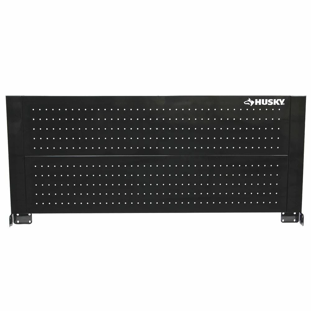 The Husky 46 in. Pegboard back wall is the perfect accessory to your Husky 46 in. mobile workbench. It adds another 786 sq. in. of vertical storage to hang a variety of items including your heavier power tools. The heavy duty 21-Gauge steel will support up to 100 lbs. and is much stronger than conventional pegboard. The peg holes will accommodate most 1/4 in. and 1/8 in. peg hooks, which are positioned 1 in. on center. The pegboard is coated with the same industrial strength powder coating that is used for the mobile workbenches, so the finish is consistent and looks great. The pegboard is 46 in W x 1 in D x 20.62 in H. This pegboard can also be individually mounted directly to your wall (hardware not included). In wall-mounting applications, no spacers are needed as the 1 in. depth of the panels adequately separate the pegboard surface from the wall.