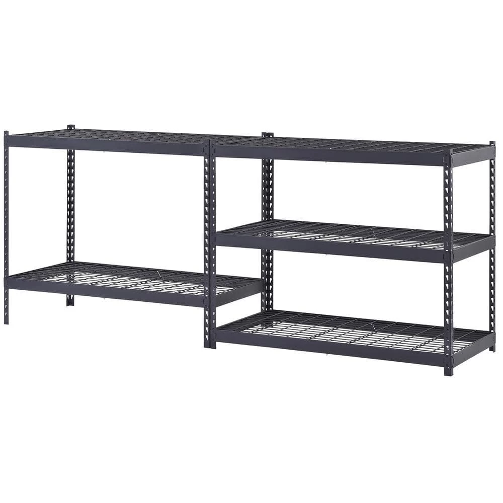 This Husky 5-shelf heavy-duty steel shelving unit can be assembled vertically as a 78 in. high unit or as two individual 39 in. high units. You can adjust this multipurpose unit’s shelves in 1.5 in. increments to fit any storage need. It features a boltless design for easy assembly and is constructed of heavy duty steel for strength and rigidity. The durable black wire shelves provide better visibility, air flow and less dust accumulation.