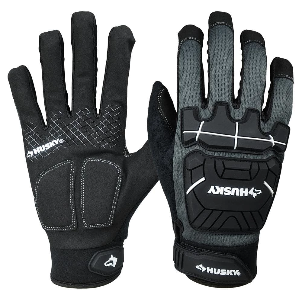 Husky Heavy Duty Mechanic Gloves are form-fitting and highly breathable while offering maximum protection. The knuckle and back of hand padding is designed to offer natural hand movement with maximum protection. The synthetic leather palm provides superior durability, and also has printed non-slip silicone for a secure grip. The glove also features a double reinforced neoprene padded palm that protects from both abrasions and vibration fatigue.