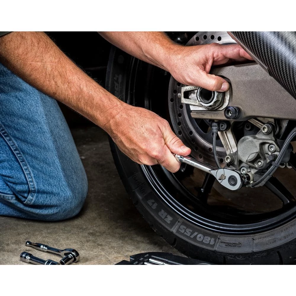 - Quick release button allows sockets and drive tools to be easily removed from the ratchet