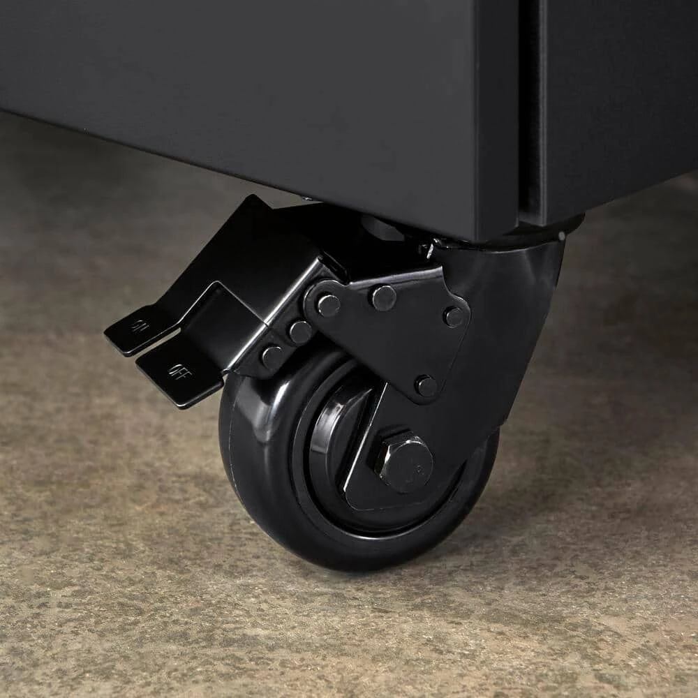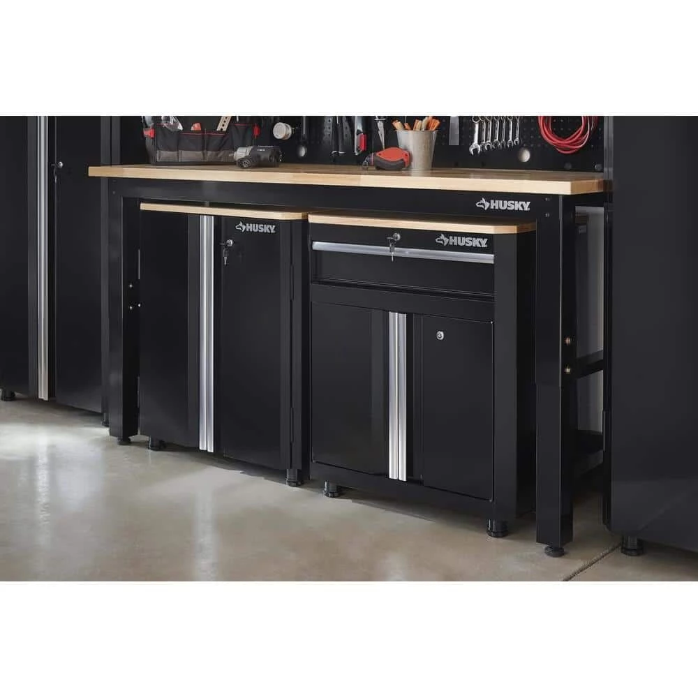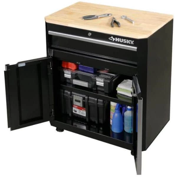 Organize your space with this Ready-to-Assemble 24-Gauge Steel 1-Drawer 2-Door Garage Base Cabinet in Black (28 in. W x 33 in. H x 18 in. D. It arrives pre-assembled. This is a durable option for your space. It’s composed of 24-gauge steel. You can adjust the cabinet to fit your needs.