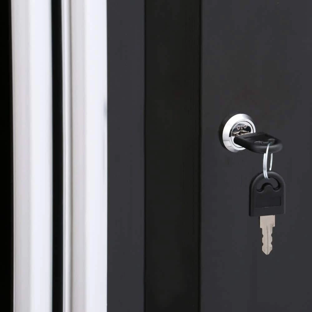 - Lockable cabinet doors equipped with magnetic closures (includes 2 lock keys)