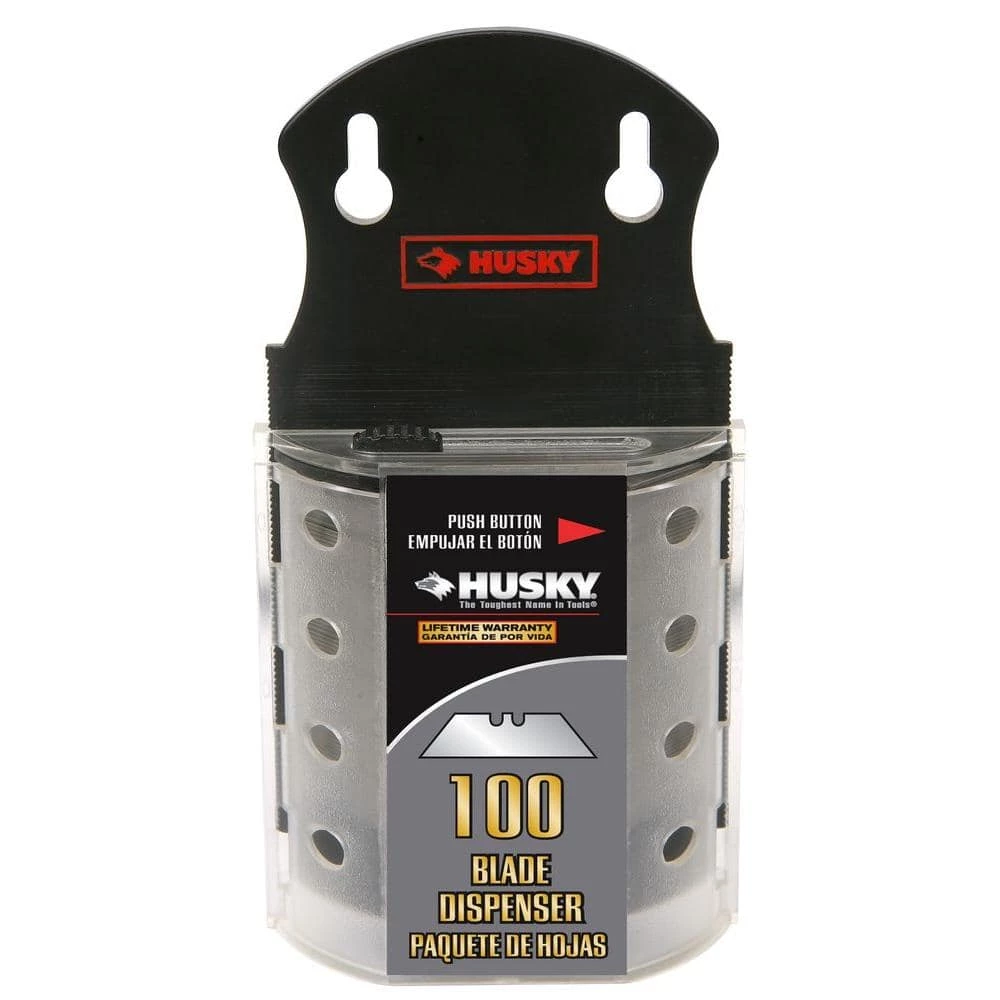 The Husky SK5 Blades for Utility Knives (100-Pack) include a dispenser for safe storage. These blades are compatible with most utility knives. They fit standard utility knives.