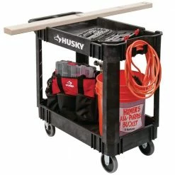 Husky 2-Tier Plastic 4-Wheeled Service Cart in Black with 500 lb. Capacity